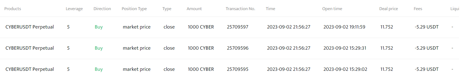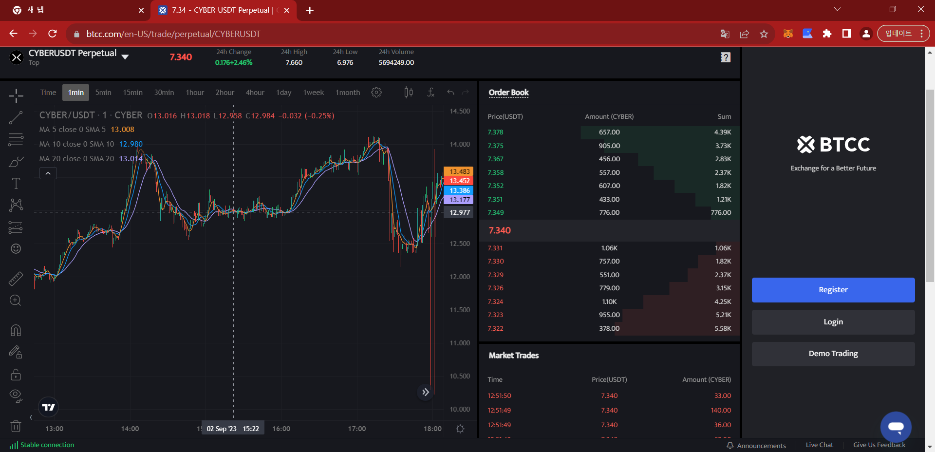 저는 2023년 9월 2일 15시 22분 경(UTC+9), btcc 거래소에서 평단 12.8968에 cyber 18000개 숏 포지션을 오픈했습니다.